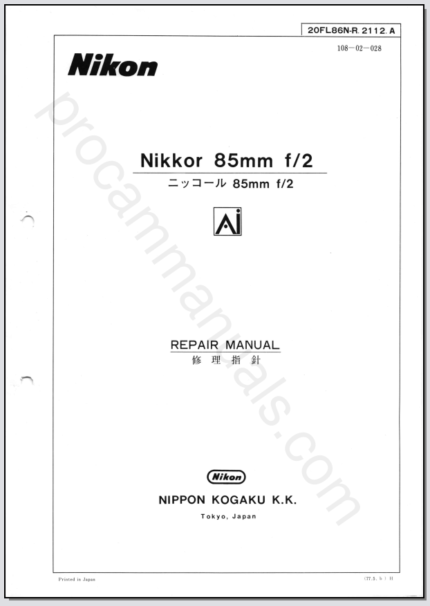 Digital presentation of an original Nikon Nikkor ED 300mm f2.8 Ai 20FLS301N with exploded views. Download limit for the file(s) purchased never expires. Make sure your download is delivered smoothly and hassle-free. Make a user account when checking out.