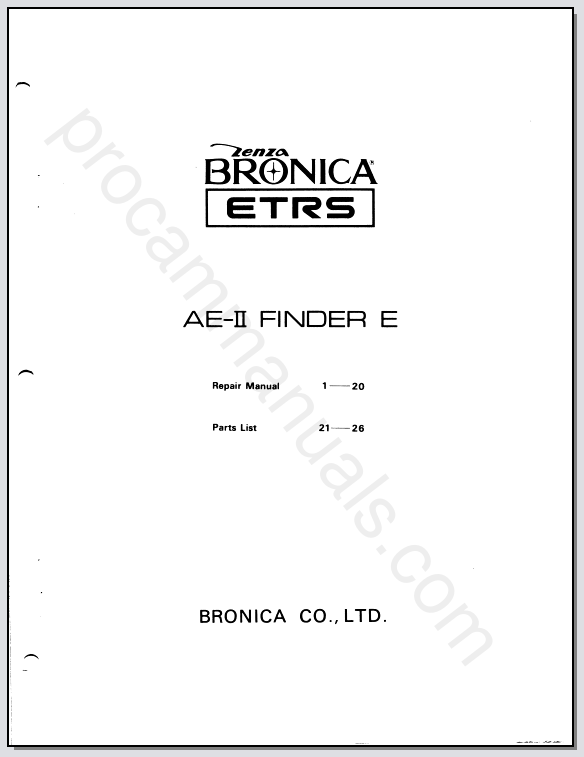 Category: Accessories Tags: Bronica ETRS AE-II Finder E Repair Manual & Parts List, ProCam Manuals Download, procammanuals.com