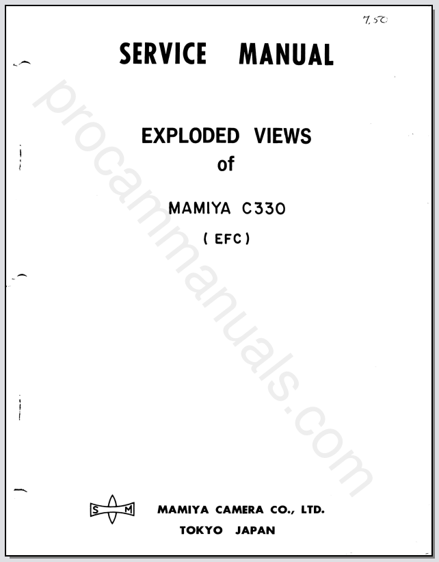 Digital presentation of an original Mamiya C330 Service Manual (EFC). Service and repair manuals can help in dis-assembly of photography products during overhaul as well as restoration. Technical information such as timing, tools, and specifications may also be included in service manuals. Some manuals include schematics and wiring diagrams. Parts lists may also show exploded views. Additionally parts catalogs may list all parts made available for camera repair.